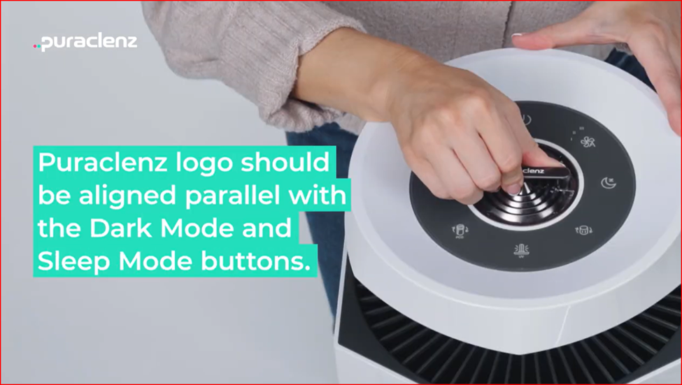 9. Place the new top cover onto the unit so the logo is parallel with the sleep mode button and the dark mode button. Then twist cover clockwise until you hear an audible click.